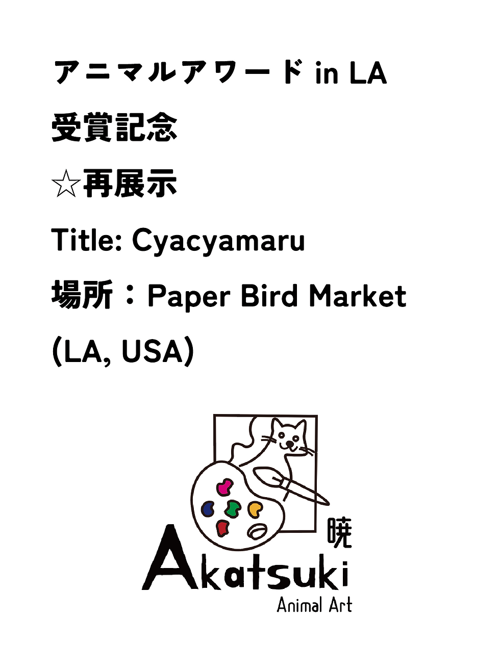 ロサンゼルス開催のアニマルアワード in LAの受賞特典で、USA, LAのPaper Bird Marketに茶々丸さんの絵を再展示します。